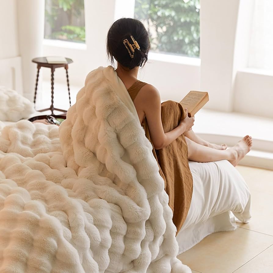 Crafted from ultra-plush faux rabbit fur, this blanket offers an indulgent softness that you won’t want to live without. It’s designed to pamper your senses and provide unmatched comfort, making it perfect for curling up on chilly evenings.
